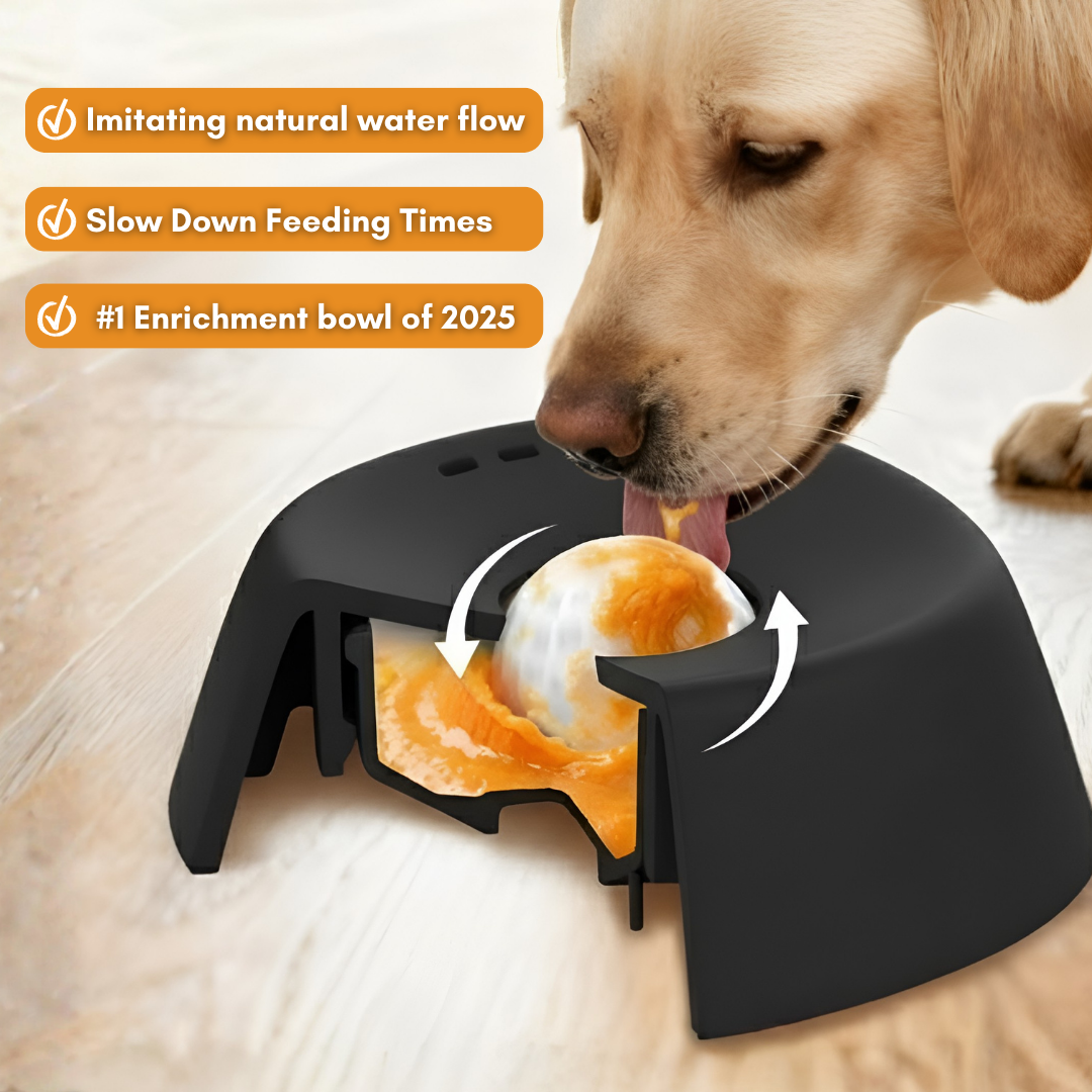 Our floating ball mechanism regulates the flow of water or liquid treats, turning every lick into a soothing, controlled experience. By slowing your dog’s pace, it reduces mess, prevents fast gulping, and encourages calm enrichment, perfect for puppies, seniors, and dogs with sensitive stomachs.
